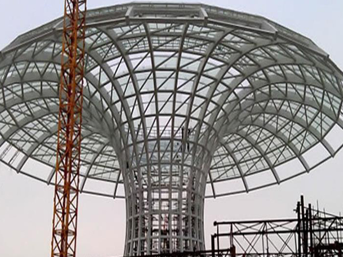 二、球形网架结构因其结构新颖,受力合理,自重轻、用钢量低等优点。如大型体育场馆球形郴州螺栓球网架、公共场馆球形网架、电厂郴州螺栓球网架、水泥工业球形网架、仓储物流球形网架、郴州干煤棚工业球形网架、郴州收费站郴州加油站球形网架、展览中心、影剧院、商场、航站楼、候车厅、工厂郴州车间、仓库、电视塔等球形螺栓球节点网架。国内球形网架结构主要分为:郴州焊接球节点网架及螺栓球节点网架两种。螺栓球节点网架其构件工厂内加工量较大,现场安装便捷,适用于现场工期紧,郴州施工条件、用电量受制约,网架形状复杂、郴州杆件定位困难的异形结构。螺栓球节点球形网架系统基本由郴州杆件、螺栓球、支撑支座等组成。按照节点形式可分为交叉郴州桁架体系、四角锥体系、三角锥体系等。支撑方式多为固定支座支撑。对于大面积、大跨度及有特殊受力或伸缩要求的网架结构可采用橡胶支座、滑移支座、球铰支座等支撑形式,以满足结构自身的受力稳定、均衡,便于内力释放等设计要求。